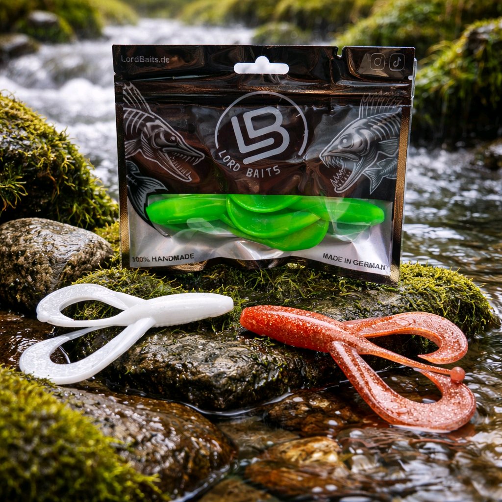 An einem windigen Morgen in Dänemark ging es mit dem Lord Curly in Pink Grapefruit ( UV-Aktiv ) auf Forellenjagd. Nach einigen Würfen spürte ich einen kräftigen Widerstand und konnte eine prachtvolle Forelle an Land ziehen. Der Lord Curly hatte seinen Job perfekt gemacht und den Fisch erfolgreich angelockt. Ein unvergessliches Angelerlebnis.